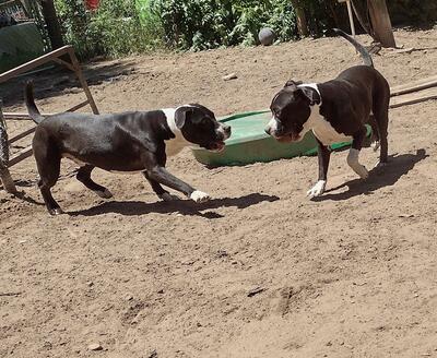 Supposedly 6 month old male intact pit/pit mix? No shots I’ve dewormed him 3x and flea control ...