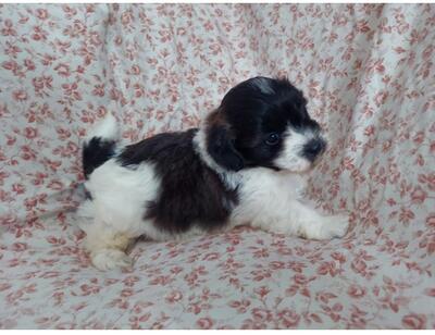 Lars is a gorgeous black & white MaltiPoo male. with brown markings on his head and ears. He was bo...