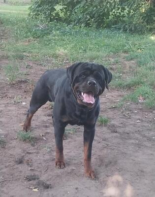Atlas is a HUGE boy he is 125lbs , Atlas is a true rottie . The 4th of July pic is of Atlas he sitt...