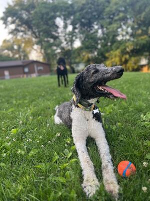 Black standard poodle His name is Shadow, and is 4 years old. Great personality and very friendly...