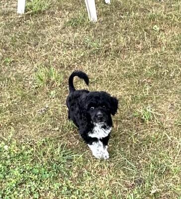 Stardust is a Black Silver Fox Portuguese Water Dog from our Independence theme litter born on May 3...