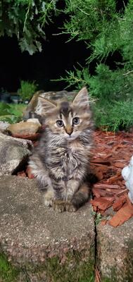 Here is a tiger female kitten born June 22nd. She's had a flea treatment and dewormed. She's ready ...