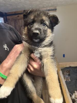 AKC German Shepherd puppies available. 4 black males left. Born 3–27–25, ready to go now. Ve...