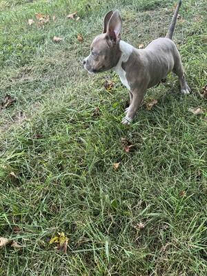 8 week old Merle snuggle bears! Dad is a Merle Frenchie mom is a chocolate tri pocket bully. I want ...