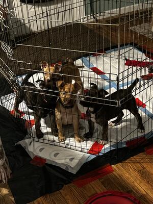 moms a pit dads a german shepherd husky mix. they are currently 5 weeks old. they’ll be ready 08/1...
