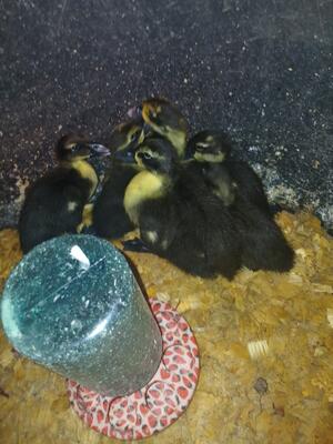 Are 2 weeks old. Muscovy Cayuga crosses. Will be black and white pied they are set as one price will...