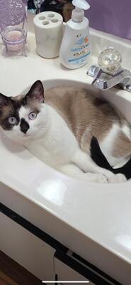 Boston is our 2y/o Siamese with pale blue eyes and very unique markings. He is good with our miniatu...