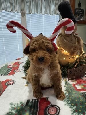 One Mini Goldendoodle ready for his forever Christmas home. He will probably not be over 18-20 lbs, ...
