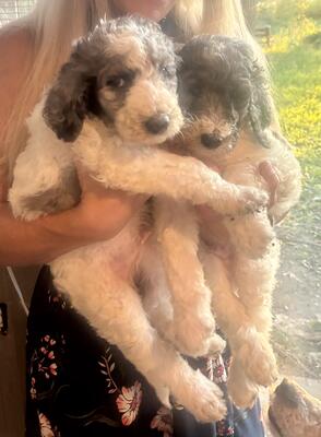 Hello I have 3 standard poodle puppies available at 8 weeks old . 1 female black n white 2 male ...