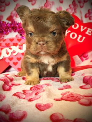 One male, one female rojo+tan fluffy French bulldogs King Kong is the dad Mom is off Gordito...