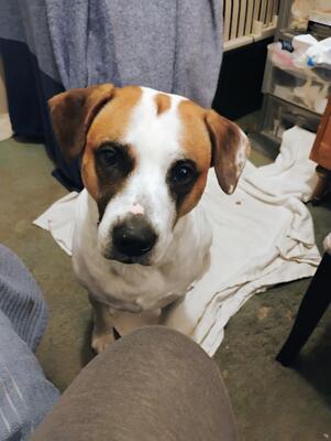 Shes about 7 years old (estimate she likes sleeping under the blankets. Shes shy at first, but warms...