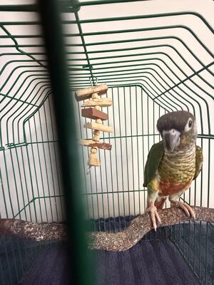 I have this female pineapple green cheek conure looking for a new perch. She’s around 6 years old....