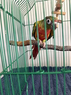 I have this female yellowsided green cheek conure looking for a new perch. 8 months old. Was hand fe...