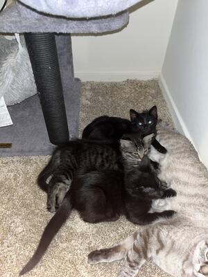 3 Kittens for sale. The mother is a Siamese cat, and she was impregnated by a black cat. Oddly enoug...