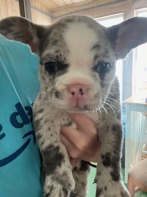 AKC Merle fluffy carrier male French Bulldog puppy ready to go to his new home. Comes microchipped, ...