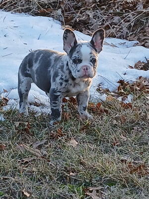 AKC Male Merle Fluffy Carrier French bulldog ready to go to his forever home. He comes with papers, ...