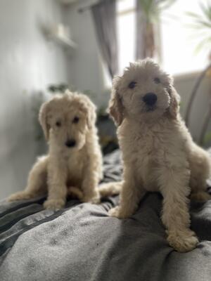 Two male doodles left father is golden doodle. Mother is Labradoodle. Born 12/14/24 call or text. ...