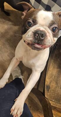 Oliver is a 2 year old brindle and white Boston Terrier. He weighs 25 pounds. He is not registered, ...