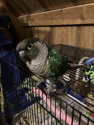Howl is a turquoise green cheek conure. I got him in March 2025 in hopes of him keeping my other con...