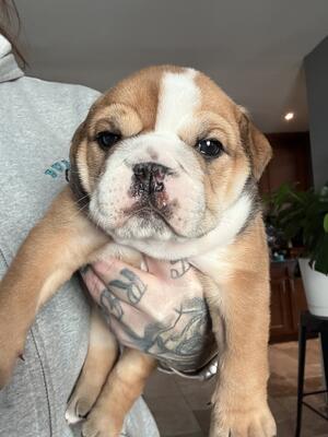 We have one female English Bulldog puppy ready to go first week of March!!! She comes AKC registered...
