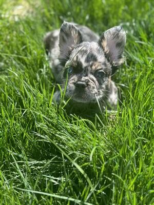 FEMALE CHOCOLATE SABLE MERLE ENGLISH BULLDOG