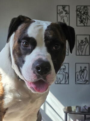 Dahmer is large 18 month Saint Benard, Brindle Pit mix. Dammer is handsome, calm, intelligent, happy...
