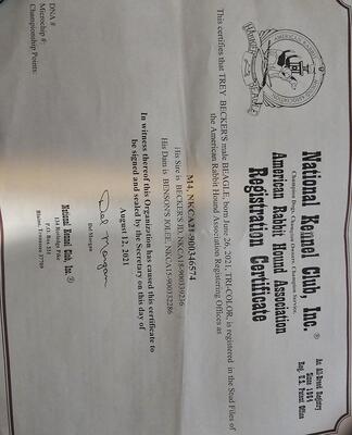 Mom and Dad are registered, but the puppy is not. We have a 7-month-old blue tick male beagle with a...