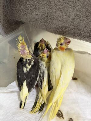 Hand-fed baby cockatiels. They are so sweet! Should be ready for their new homes around ready to go ...