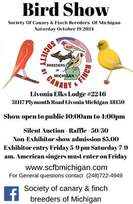 Bird show , also will be birds for sale , will be all types of canaries and finches and some types o...
