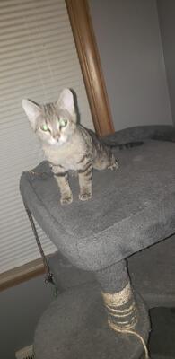 I have a male kitten ready for his new home. He’s very affectionate loves to cuddle and acts like ...
