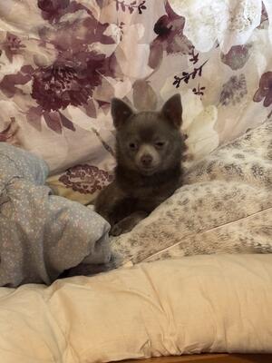 Hello I have three Beautiful Pomchi puppies available Lavender Merle female 850 Chocolate Merle ...