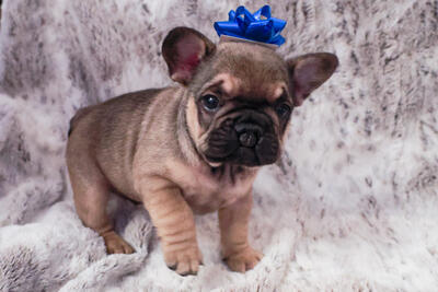 French Bulldog puppy 8 weeks old black masked tan point boy with a cleft lip, does not have a cleft ...