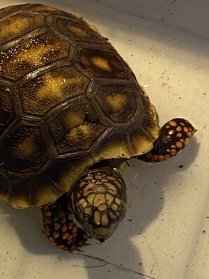 a red foot hatchling up for rehome. it still has it hatching tooth so it’s approximately 4-6 week...