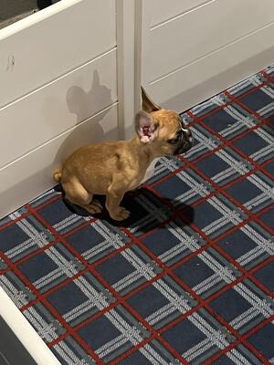He is a red Frenchton. His mom is my Stella, a Frenchton and his dad is a Chocolate Merle French Bul...