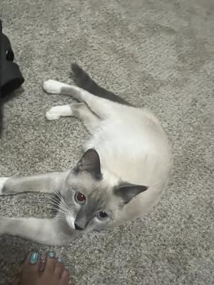 This little mitted bluepoint girl is up for adoption. She is very sweet but shy. She sits back and w...