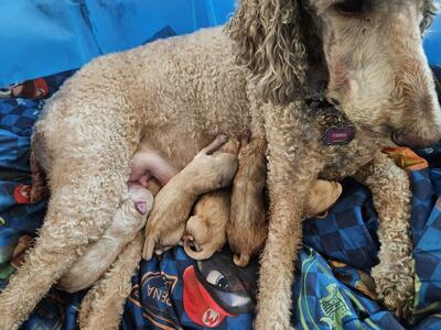 9 healthy puppies arrived June 4th! AKC registered buff standard poodle female successfully bred to ...