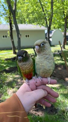 DNA tested yellow sided green cheek conure female very friendly. Non-DNA tested dilated turquoise (b...