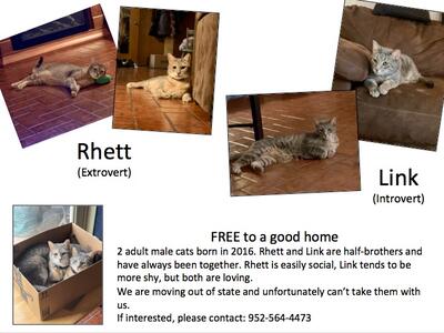 Sweet brothers, bonded. Fixed and house trained. Mixed tabby, breed unknown. See image for details. ...