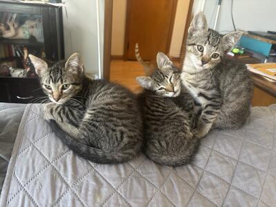 3 boy tabby, 2 months. 1 girl calico/tabby 6 months. Pickup in Glencoe, MN....