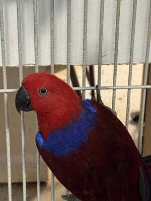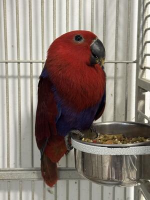 Solomon Island Eclectus female. She is 6 months old. She was parent raised, and has not been handled...