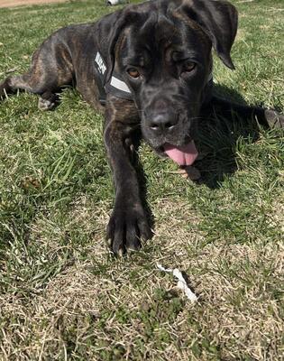 2 year old female cane corse she is spayed she does well with other dogs and cats good with children...