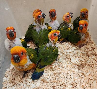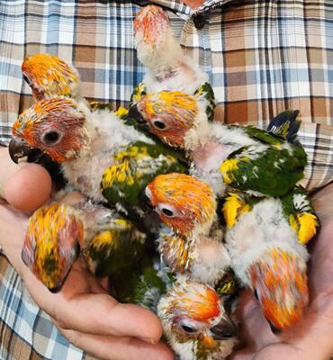 We are hand feeding a gorgeous clutch of Sun Conure babies right now! All babies will be banded a...