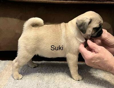 AKC Suki is a gorgeous female fawn pug puppy. She is absolute doll baby, with a sweet, sweet persona...