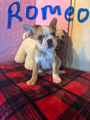 2 boy French BulldogXBoston Terrier mix, vaccinated and dewormed. 8 weeks old and eating dry food...