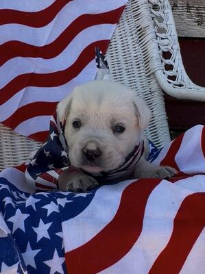 ABKC pocket bully Loxi x Raven Female White Stripe down face Up to date on shots Microchipped...