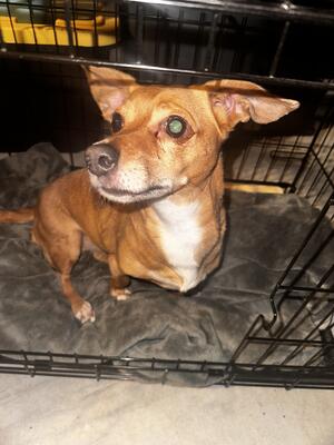 Chihuahua dachshund mixed female 3 years old. Sons dog who moved back in with us and his dad is very...