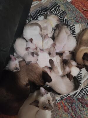 Kittens born 11.11.25 on Veterans Day. Mom is a seal point and dad is a blue/white bicolor. Only one...