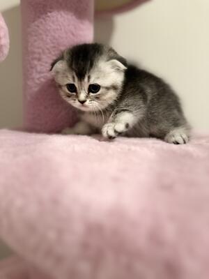 Born 05/25/2025 This sweet little Scottish Fold kitten was born on May 25, 2025. She has a gentle ...