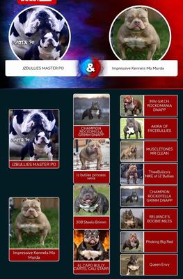 ADBA Bully puppies parents are on site. Only one female top right corner rest are males. They have ...