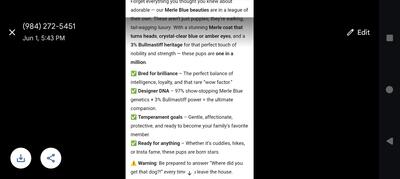 female micro bully paper in hand if you have any questions text or call 9105300662...